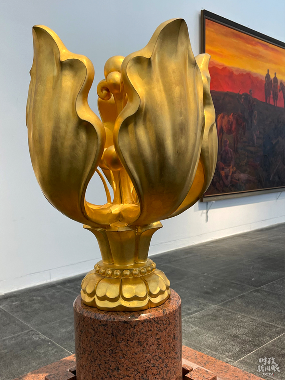 △在國徽的顏色選擇上,林徽因、梁思成主張莊嚴富麗,僅以金、紅二色表現。(總枱央視記者石丞拍攝)