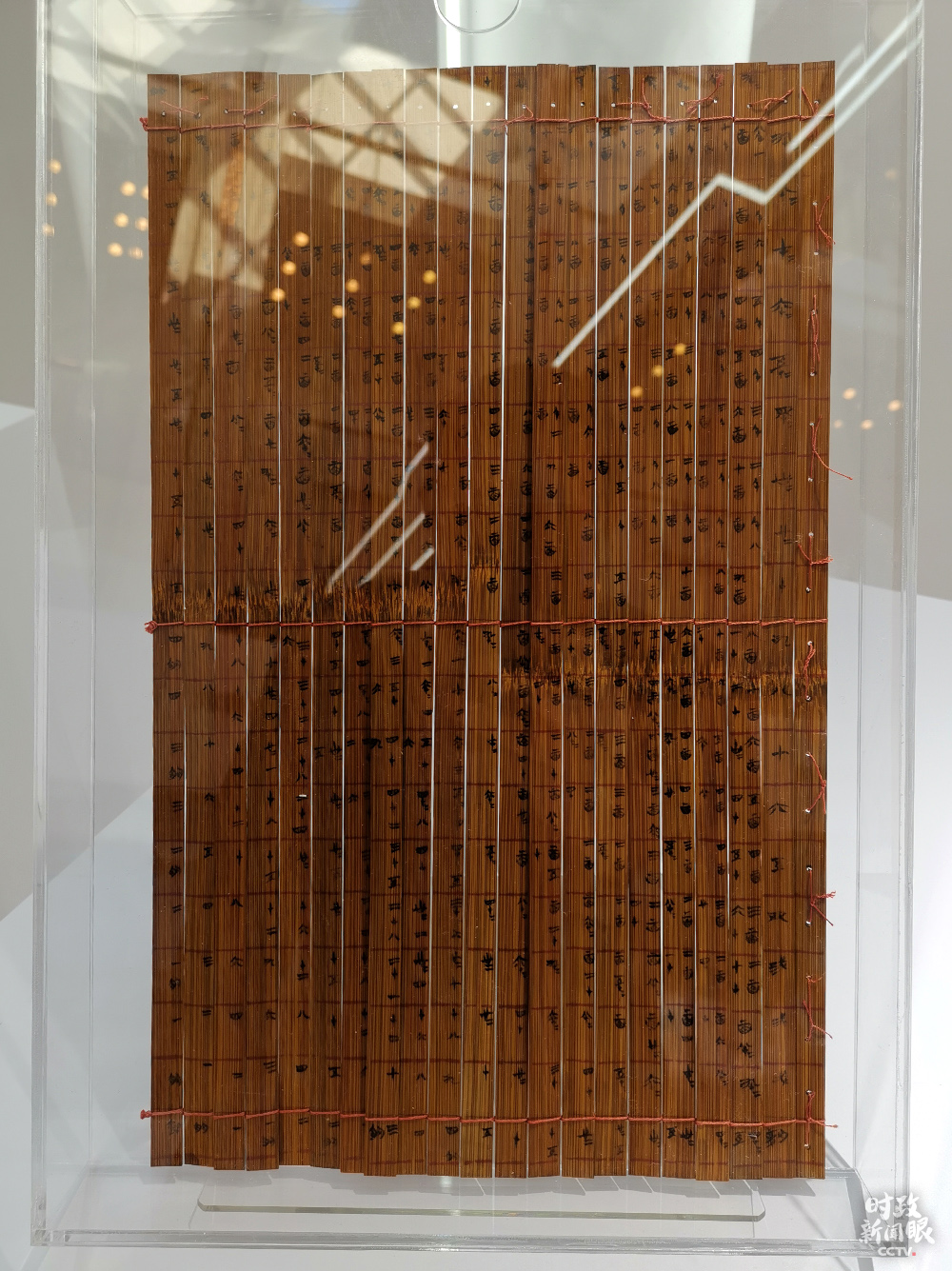 △清華大學藏戰國竹簡《算表》,在2017年經吉尼斯世界紀錄獨立核實認證,是目前發現的人類最早的十進制計算工具。(總枱央視記者魏建拍攝)