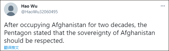 “在佔領阿富汗20年後,五角大樓居然聲明,阿富汗的主權應該被尊重。”對於五角大樓“違和感滿滿”的言論,一名網友似乎感到難以置信。