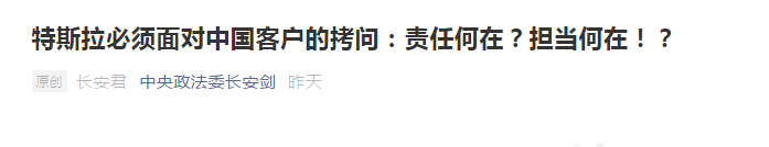 中央政法委長安劍:特斯拉必須面對中國客户的拷問:責任何在?擔當何在!?