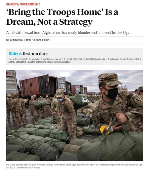 約翰·博爾頓:從阿富汗撤軍是一個夢想,而不是一項戰略