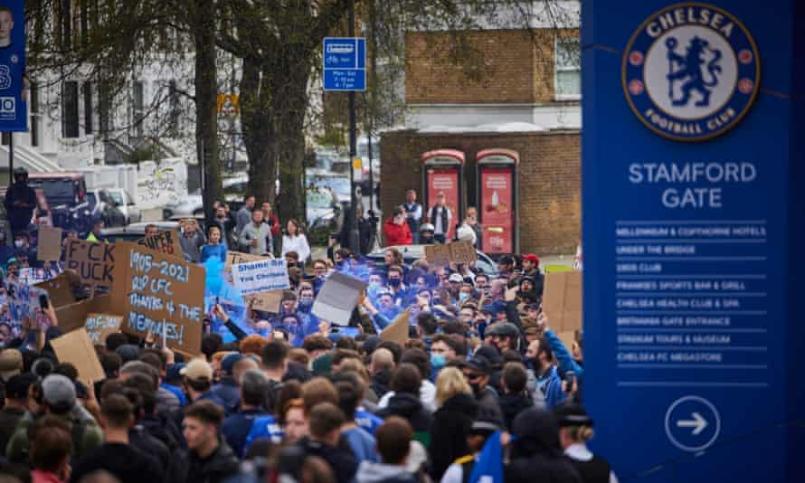 曾宣佈加入“超級聯賽”的英超利物浦和切爾西俱樂部球迷均引發了其球迷的憤怒與抗議,圖源:Getty Images/David Levene/The Guardian