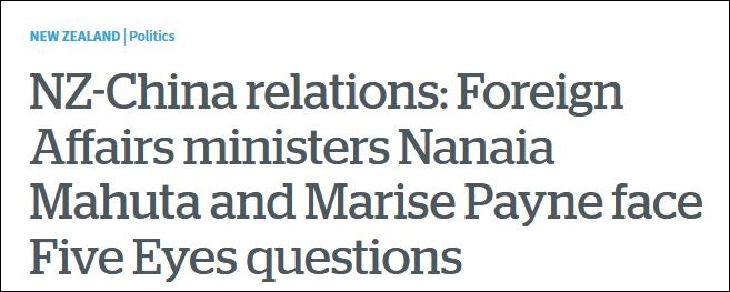 中國和新西蘭關係:新外長馬胡塔和澳外長佩恩面臨“五眼”問題 《新西蘭先驅晨報》報道截圖