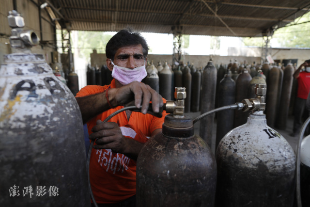 由於新冠疫情惡化,印度多地報告醫用氧氣短缺。圖自澎湃影像