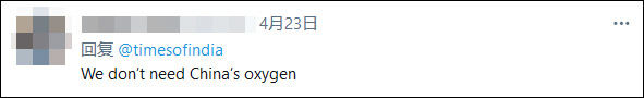 在《印度時報》發佈這篇報道的推文留言區,有人附和道:“我們不需要中國的氧氣。”