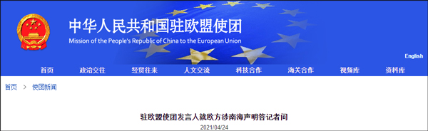 中國駐歐盟使團網站4月24日消息,駐歐盟使團發言人就歐方涉南海聲明答記者問: