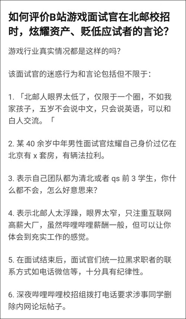 被質疑招聘歧視,B站相關負責人回應:並未發表不尊重北郵言論,但存在説教