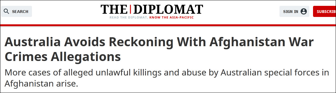 《外交學人》提到,澳大利亞總理莫里森此前表示不考慮對受害者進行賠償,澳國防部長彼得·達頓(Peter Dutton)4月19日拒絕取消對在阿富汗服役澳軍的嘉獎,聲稱“我們不應該為了那1%的罪惡而懲罰那99%的人”。