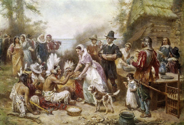 Lean Leon Gerome Ferris於1899年創作的油畫《1621年的第一個感恩節》