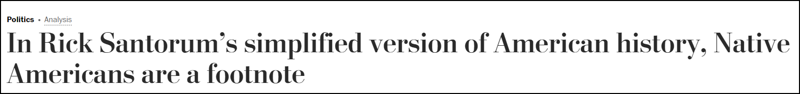 《華盛頓郵報》的評論一針見血,“桑托勒姆簡化版的美國曆史中,印第安人只是一個腳註。”