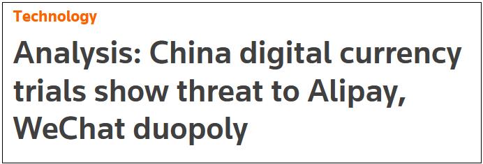 微信、支付寶和央行數字人民幣不存在競爭關係,兩者並非處於同一維度。