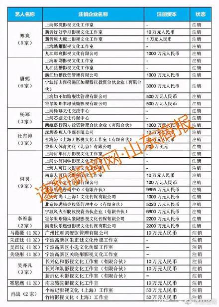 鄭爽涉嫌逃税備查,眾多藝人工作室註銷