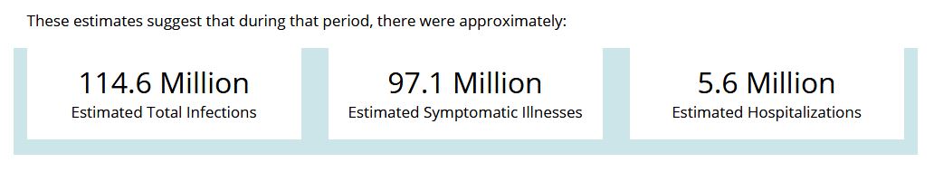 具體來看,疾控中心估計從去年2月到今年3月,新冠病毒在美國已導致1.146億例感染病例,包括9710萬例為有症狀病例,560萬例住院病例。