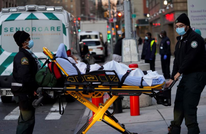 去年,一名美國新冠患者被送上救護車 新華社圖