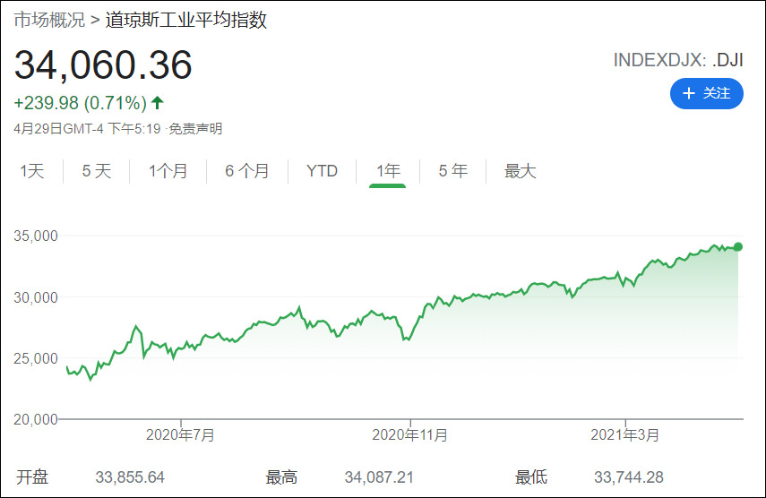 道瓊斯指數近一年走勢