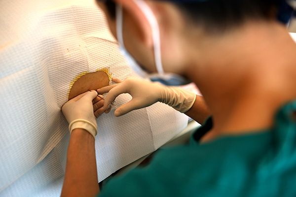 廈門長庚醫院,醫生為實施無痛分娩的產婦進行硬膜外穿刺。李思源(福建分社)/中新社/視覺中國 資料圖