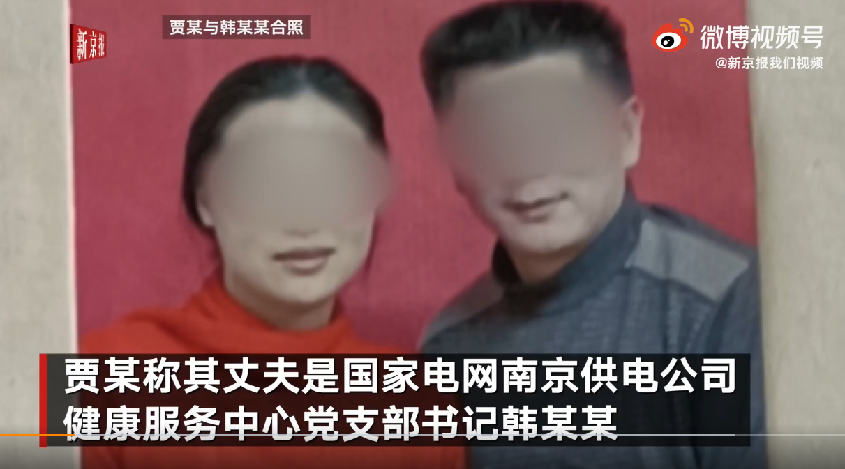 5月7日,南京一女子賈某實名舉報其丈夫出軌並長期受賄。賈某稱,其丈夫是國家電網南京供電公司健康服務中心黨支部書記韓某某,他與多名有業務關係的女性、下屬長期保持不正當男女關係。韓某某與其情婦長期霸佔賈某婚前購入房產,且夥同情婦毆打賈某。