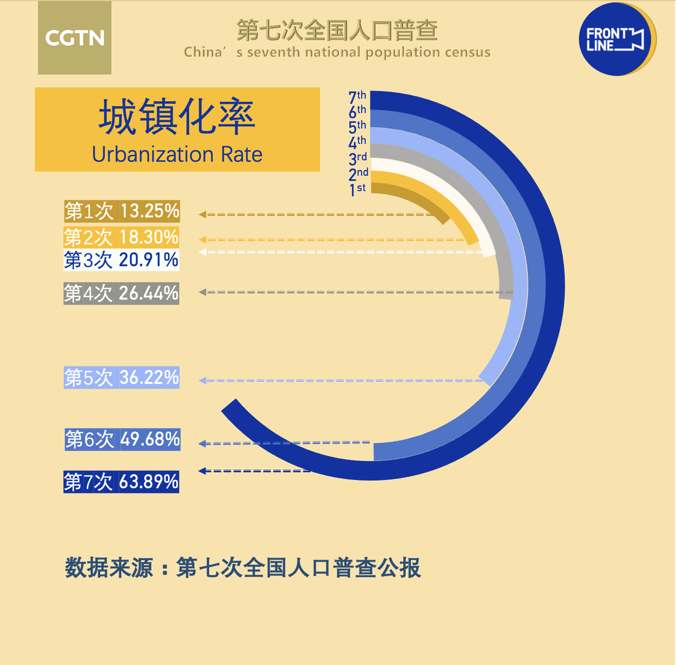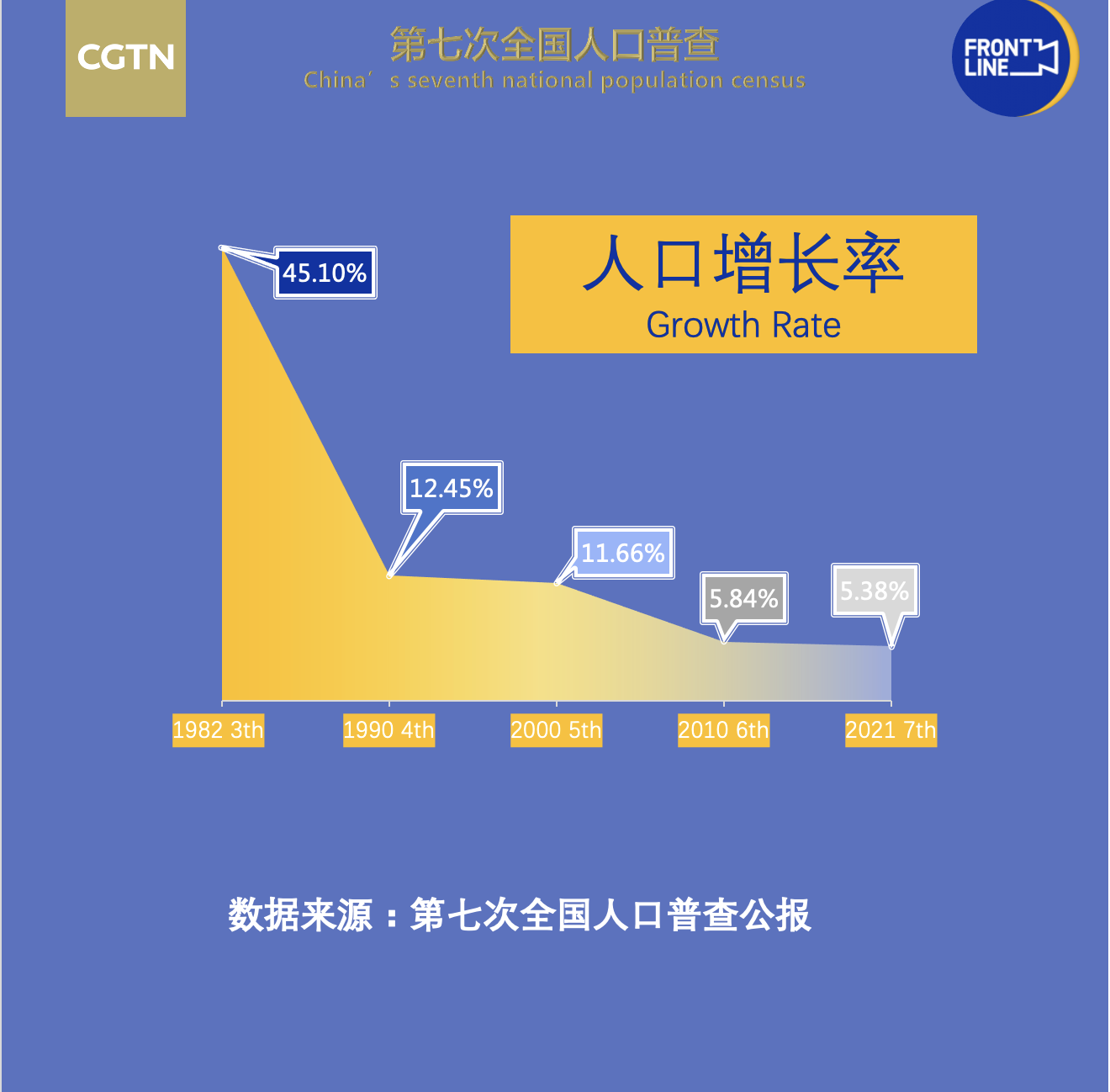 第七次全國人口普查主要數據 圖自@CGTN記者團