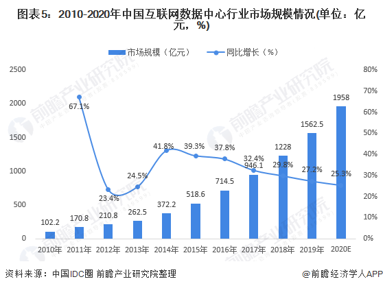 中國數據中心行業市場規模 圖片來源:前瞻產業研究院