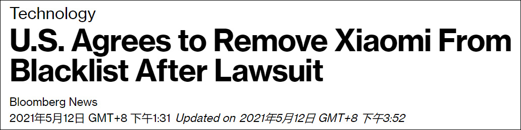 彭博社報道指出,小米與美國國防部達成和解協議,標誌着中國科技企業在與美國政府的交鋒中獲得“罕見的勝利”(rare victory),因為中美兩國在貿易、人權、香港等問題上存在不少分歧。