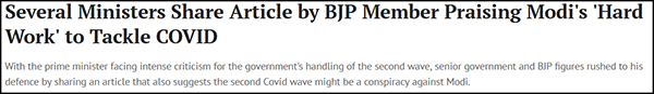 The Wire還諷刺道,印度和全球各地的人們確實很關心莫迪為何要堅持舉行選舉集會、允許大壺節活動且拒絕實施封鎖,莫迪這些做法就是人們批評他抗疫不力的原因,而維爾瑪並沒有給出任何像樣的解釋。