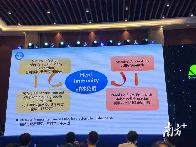 他提到,實現羣體免疫的一種方式是通過自然感染(無干擾下的感染),這將造成70%-80%的感染率以及5%的死亡率,因此他認為“自然免疫不現實、不科學、不人道。”