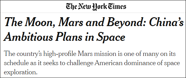 《紐約時報》報道截圖:月球、火星及更遠,中國的太空壯志