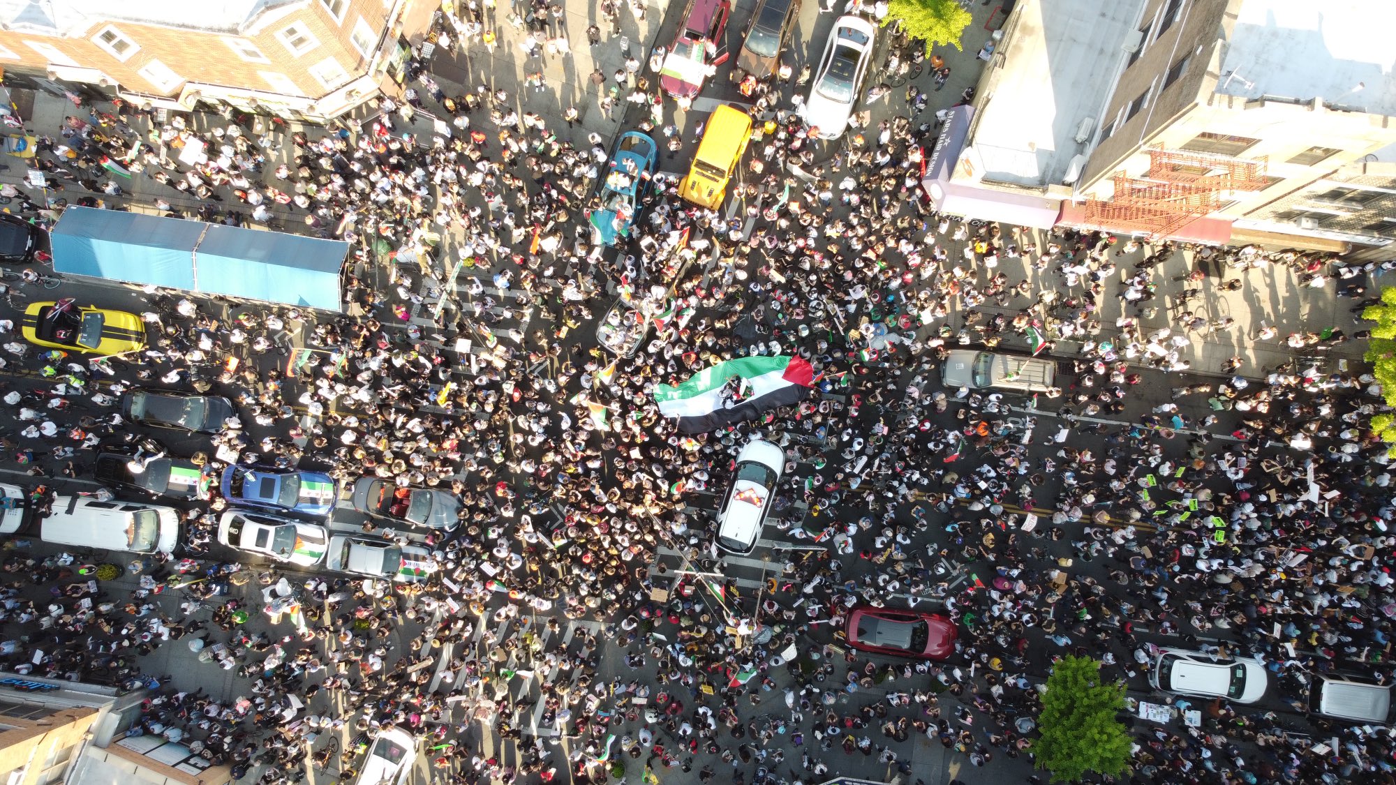 本輪巴以衝突,伊斯蘭國家多譴責以色列方面的行動,國際社會上也有不少遊行聲援巴勒斯坦。當地時間15日,北美多地爆發聲援巴勒斯坦的遊行。美國布魯克林的遊行上,很多人高呼“解放巴勒斯坦”、“自由為加沙”等口號。