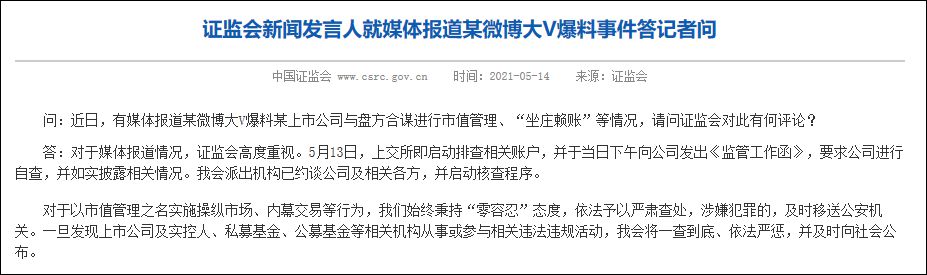財經大V葉飛爆料上市公司市值管理內幕,證監會介入