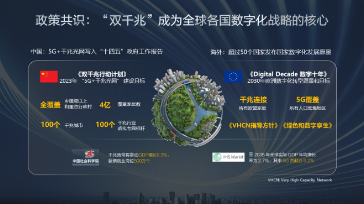 2021年3月,“加大5G網絡和千兆光網建設力度,豐富應用場景”被首次寫入政府工作報告,工信部也迅速印發了《“雙千兆”網絡協同發展行動計劃(2021年-2023年)》,統籌推進以5G和千兆光網為代表的“雙千兆”網絡建設快速落地。