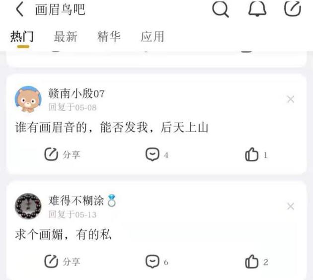 與網絡交易平台銷售國家保護動物的隱晦相比,百度貼吧就明目張膽得多。比如“鷯哥吧”、“畫眉鳥吧”、“和尚鸚鵡吧”、“灰鸚鵡吧”等存在大量有關捕捉、掏鳥窩、出售、收購等信息。