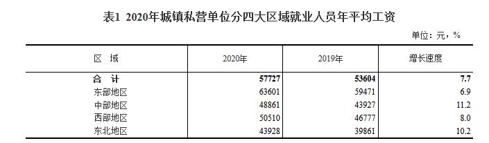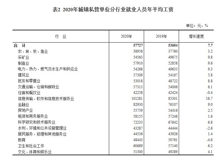 統計局:2020年城鎮私營單位就業人員年平均工資57727元