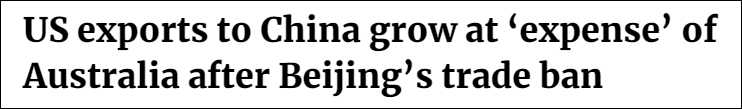 《南華早報》19日報道,在澳大利亞一系列對華出口商品碰壁後,美國正穩定地“填補”盟友出口留下的空白。觀察人士認為,美國優先考慮的是自身經濟利益,哪怕是“親密盟友”也要往後靠。