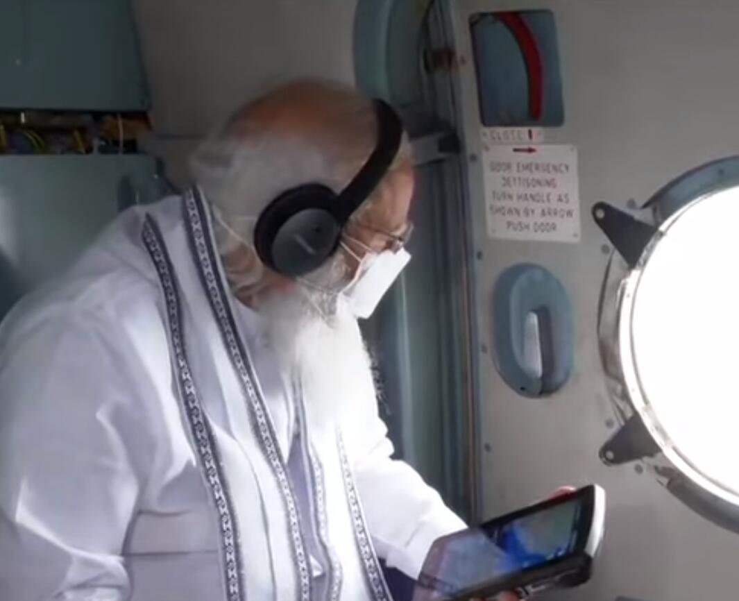 印度總理莫迪搭乘俄製米-17V-5直升機專機視察災區的視頻截圖