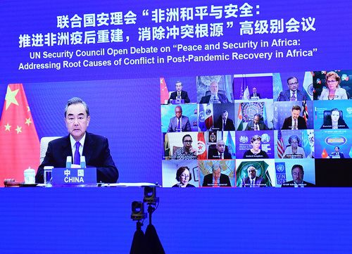 2021年5月19日,國務委員兼外長王毅主持聯合國安理會“非洲和平與安全:推進非洲疫後重建,消除衝突根源”高級別會議。