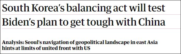 英國《衞報》20日報道稱,當文在寅前往華盛頓特區後,將面臨關於中國問題的困境——如何應對來自拜登的“與盟友合作,施壓中國”的要求?