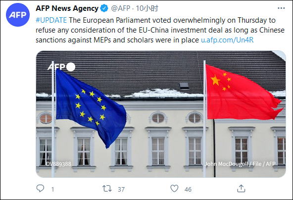 這項動議並不具備法律效力,歐洲議會也稱這“不影響中歐投資協定批准程序的最終結果”,但在多家外媒看來,歐洲議會20日的這一做法,實質上加深了中歐關係的緊張。