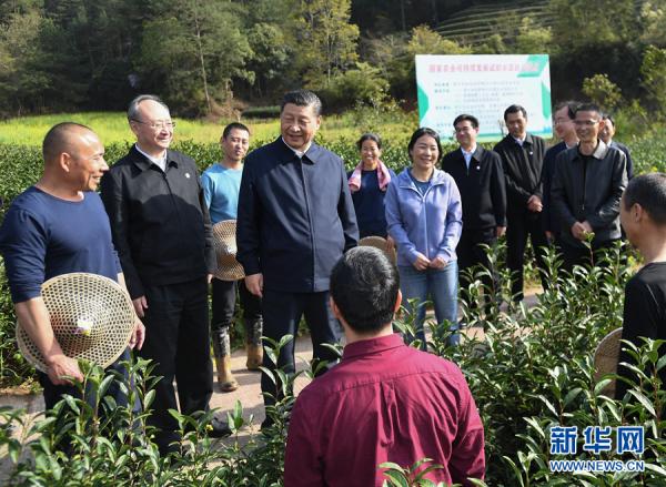 2021年3月22日,正在福建考察調研的習近平總書記來到武夷山市星村鎮燕子窠生態茶園,察看春茶長勢,瞭解當地茶產業發展情況。