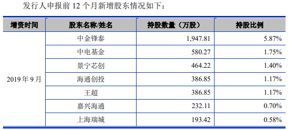 對比招股書內容,除了在原基礎上增資的中金鋒泰外,公司的新增股東中電基金、景寧芯創、海通創投、嘉興海通、上海瑞成、哈勃科技、國開科創、青浦投資等均未出現在投資人變更後的名單中。