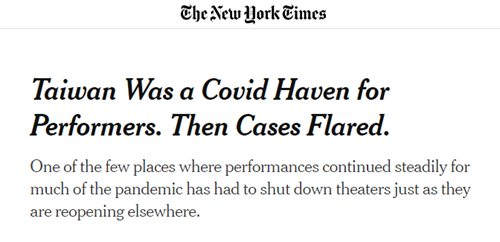 疫情暴發初期,台灣沒有取消現場演出,是表演者的“天堂”,也因為防疫“優秀”一度被西方捧成抗疫典範、防疫“優等生”,但病毒不留情面地戳穿了“優等生”的表象,用沉重的教訓將台灣從“天堂”拉回現實。