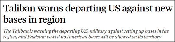 塔利班警告鄰國:不要向撤出阿富汗的美軍開放領土