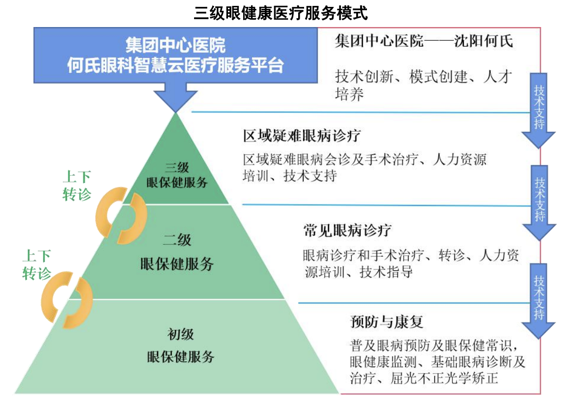 根據何氏眼科的説法,這是一項通過二十餘年實踐,探索出的一條可持續、可複製的三級眼健康醫療服務模式: