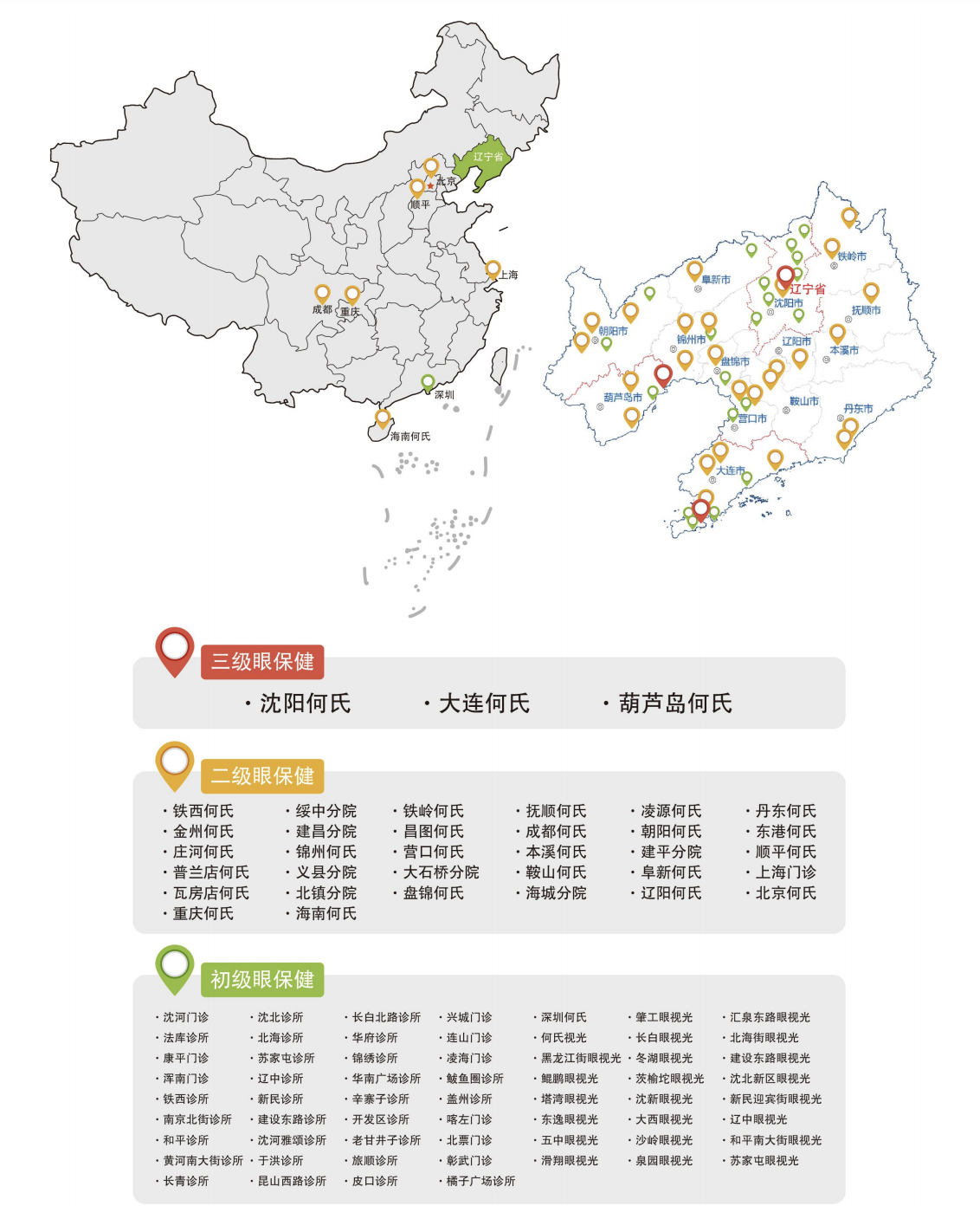 據介紹,何氏眼科三級眼保健服務機構均在遼寧省內,分別為瀋陽何氏、大連何氏、葫蘆島何氏,且定位為遼中、遼南、遼西區域中心醫院。