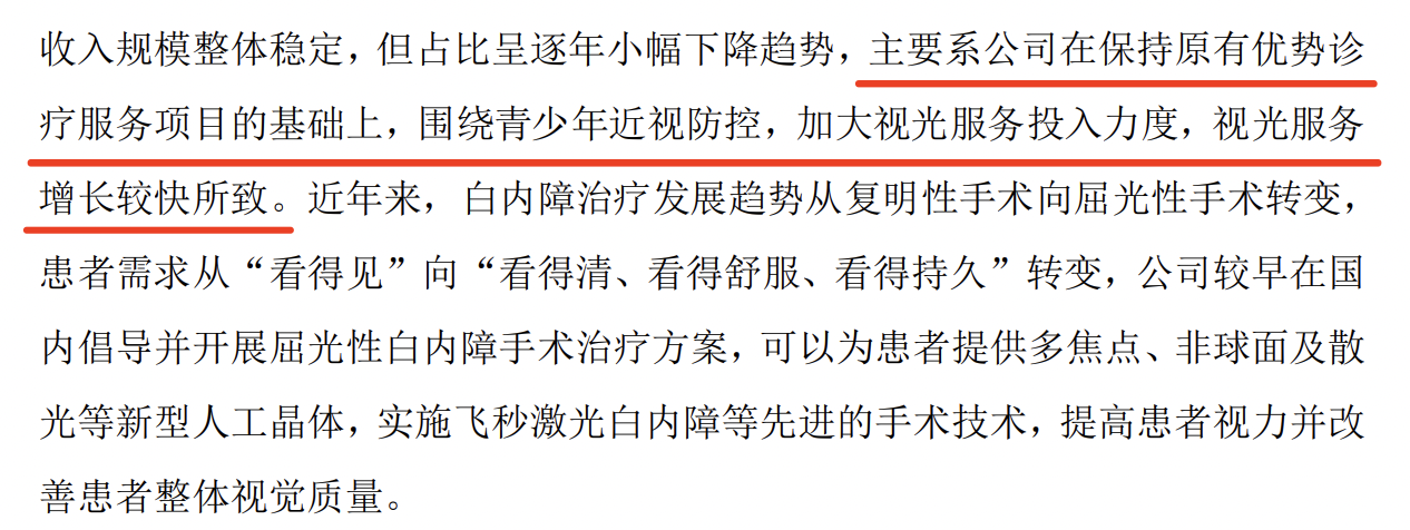 主要系公司在保持原有優勢診療服務項目的基礎上,圍繞青少年近視防控,加大視光服務投入力度,視光服務增長較快所致。