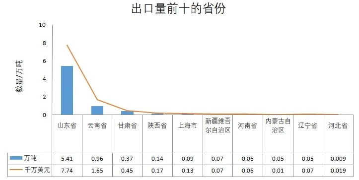 2021年1-4月,出口總量31.67萬噸,同比增加7.51%;出口總額45.11千萬美元,同比增加20.34%。