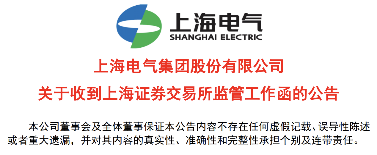 隨後,上交所火速發出《監管工作函》,要求上海電氣盡快核實實際情況,全面、審慎評估可能的影響,嚴格按照《企業會計準則》進行資產減值計提等處理,按規定及時、持續履行信息披露義務,依法依規充分採取有效措施維護上市公司合法權益,儘量減少相關風險事項產生的不利影響。