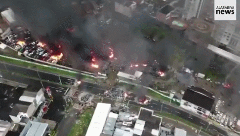 26日,哥西南部城市圖盧阿市司法大樓“正義宮”遭焚(圖自澎湃影像)