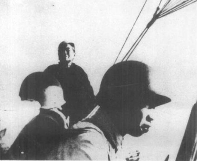 為渡江部隊掌舵的是顏紅英父親,搖櫓的是顏紅英,她妹妹在船艙。