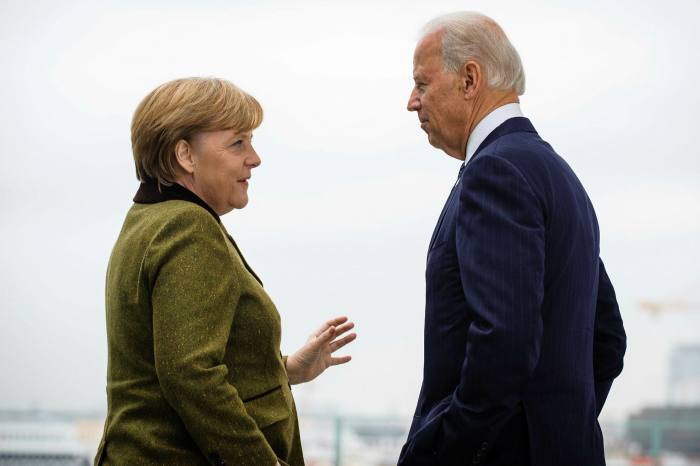 2013年,時任德國總理默克爾和美國副總統拜登,圖自《金融時報》。