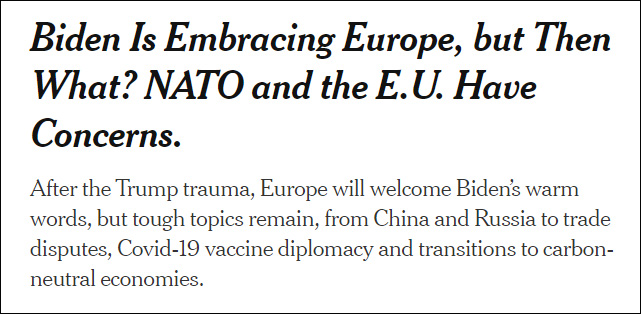 歐洲國家的顧慮還包括美國的民族主義與民粹主義力量是否還會捲土重來。《紐約時報》6日一篇評論文章指出,不要低估特朗普四年執政對於歐盟的衝擊,歐洲人親眼目睹了美國堅持了75年的外交政策是如何隨着一位新總統入職而在一夜之間消失。